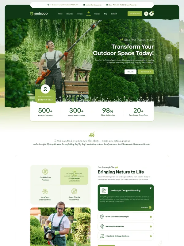 “At Landscop, we’re committed to creating green spaces with care—using eco-friendly methods, ensuring quality, and delivering a great experience.”